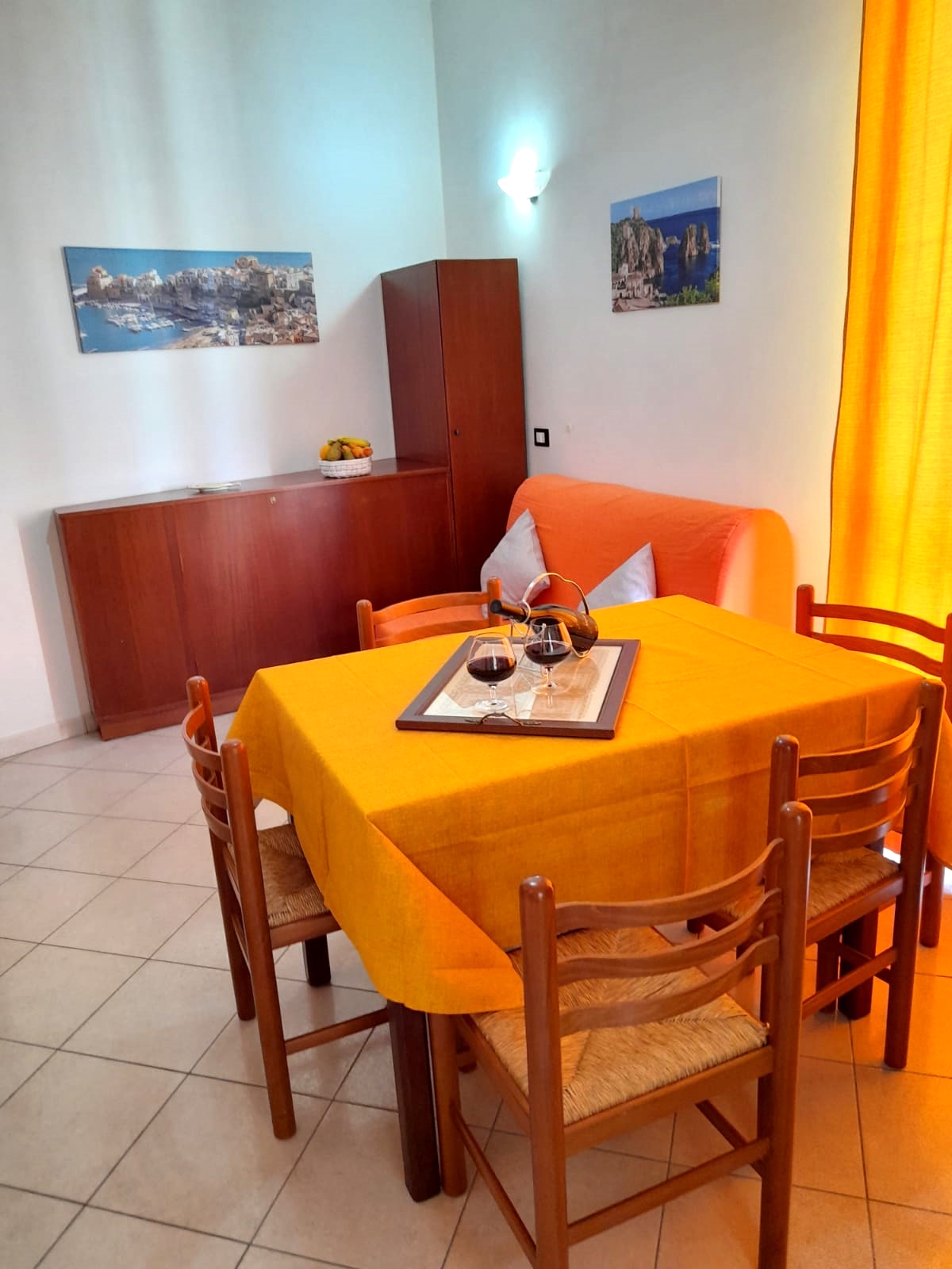Appartamento a Castellammare del Golfo, a pochi minuti a piedi dal centro storico e dal porto del paese. Dotato di tutti i comfort e di un tranquillo terrazzo che permette anche di pranzare all' aperto. L'appartamento dispone di una camera da letto matrimoniale e in aggiunta di un divano letto matrimoniale nel soggiorno.
